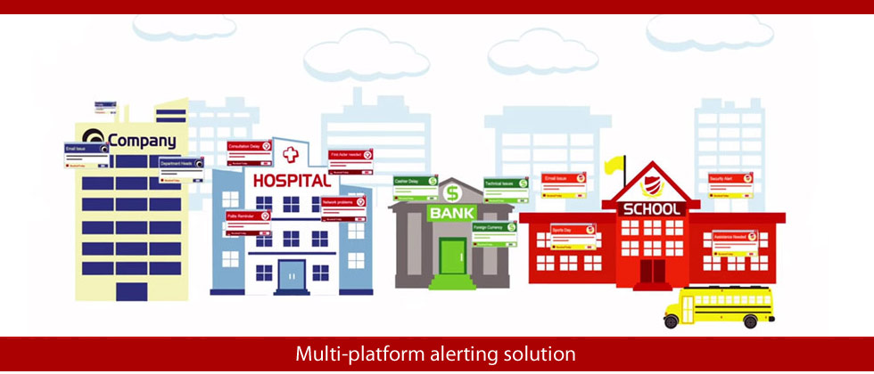 Send routine notifications or urgent alerts to selected or all desktops (Windows, Mac or Linux) or large information panels from a Windows PC or Android/Apple iOS device.